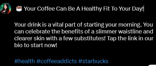 This collection showcases my ability to craft compelling, brand-aligned copy with a strong focus on audience awareness. From promoting Starbucks sales and seasonal promotions to writing engaging articles for entertainment websites, these samples highlight my versatility in tone, style, and messaging. Each piece is designed to connect with its target audience, effectively capturing brand identity, social media trends, and marketing while driving engagement and interest.